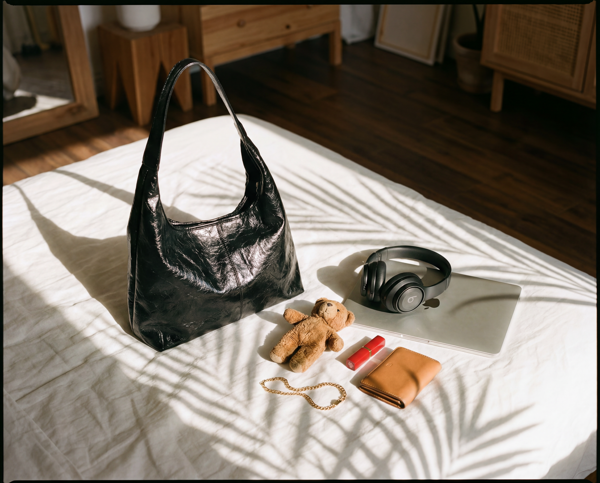 The elongated shoulder straps provide a comfortable carry, whether worn over the shoulder or in hand, while subtle drawstring details add a refined, adjustable touch. The softly structured body maintains its shape while still feeling relaxed and effortless—perfect for workdays, weekends, and everything in between.